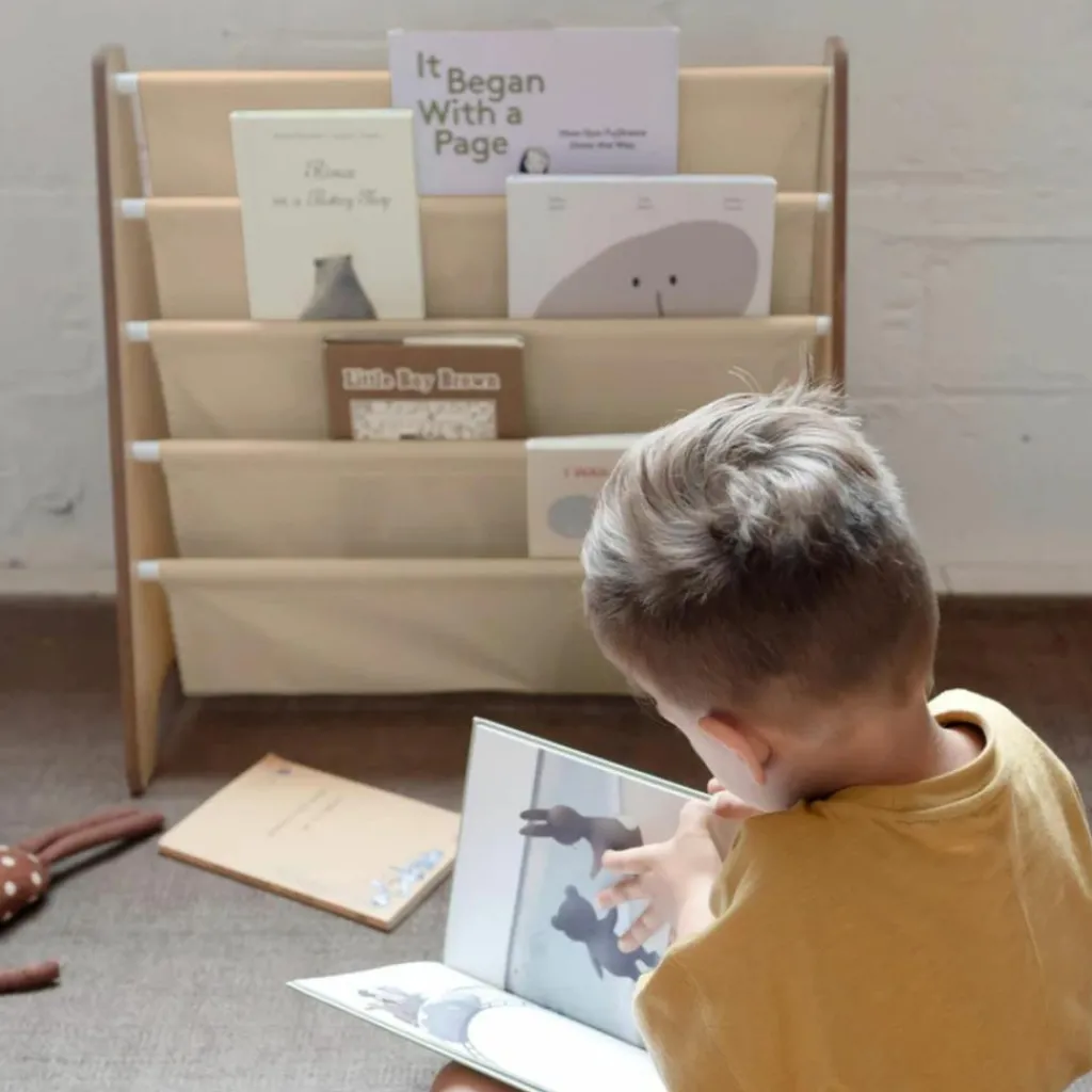 Initiez votre enfant au plaisir de la lecture avec la Bibliothèque en tissu recyclé signée 3 sprouts, conçue pour allier écologie, autonomie et décoration ludique !