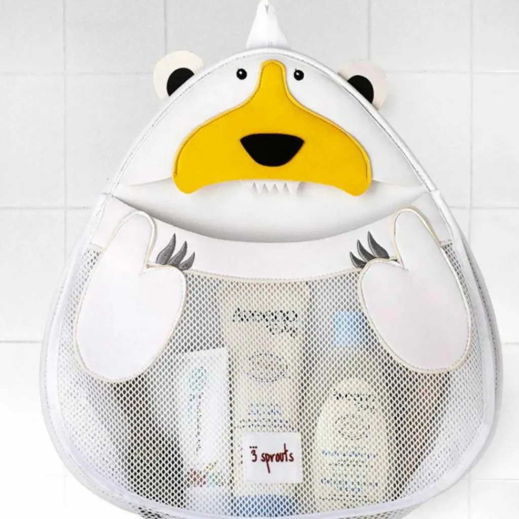 Le filet de rangement jouets de bain par 3 sprouts est astucieux pour que les jouets du bébé soient bien rangés.