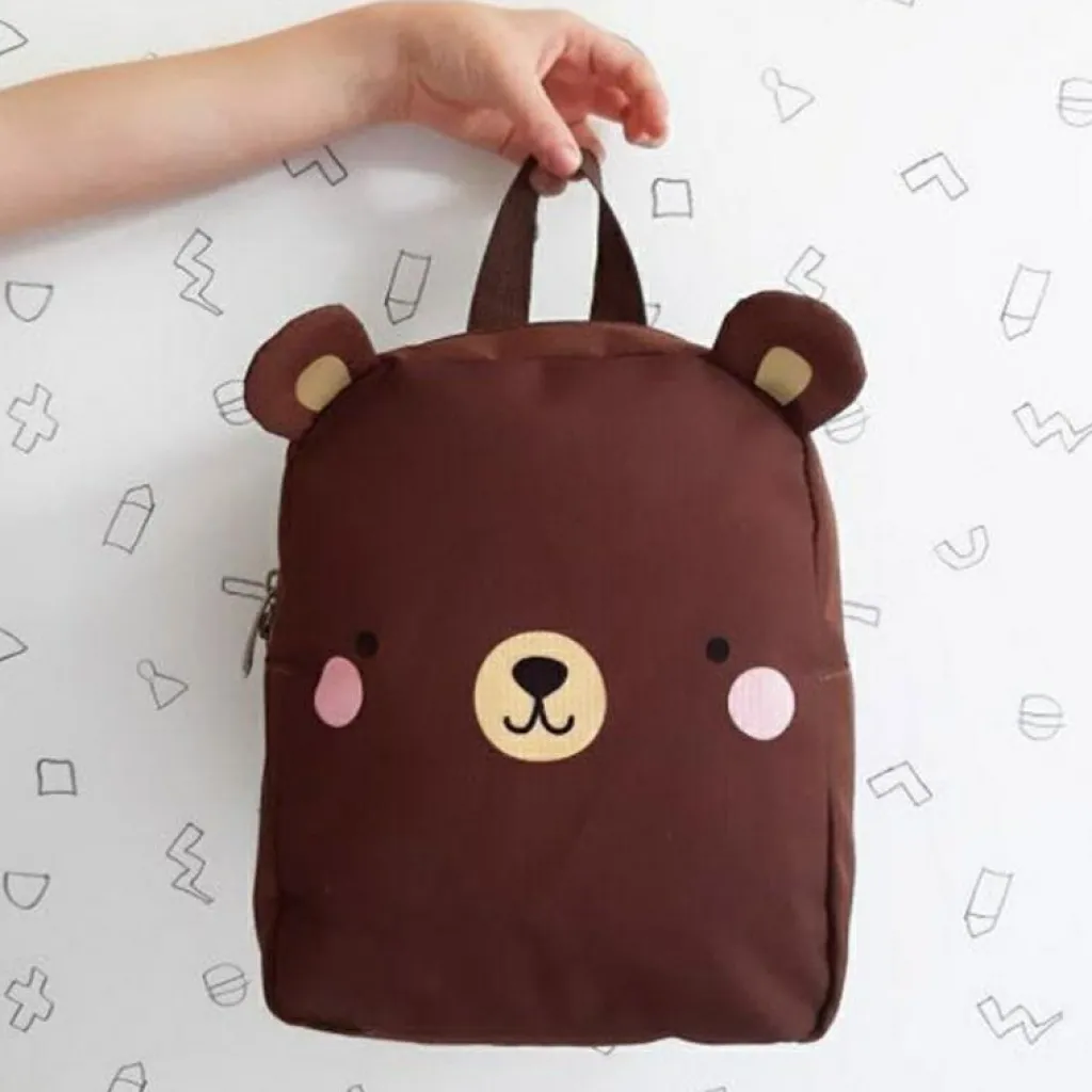 Le sac à dos bébé marron Ours de la marque A Little Lovely Company est parfait pour emmener tout le nécessaire pour une journée à l’école maternelle : doudou, goûter, feutres, petit cahier de coloriage…