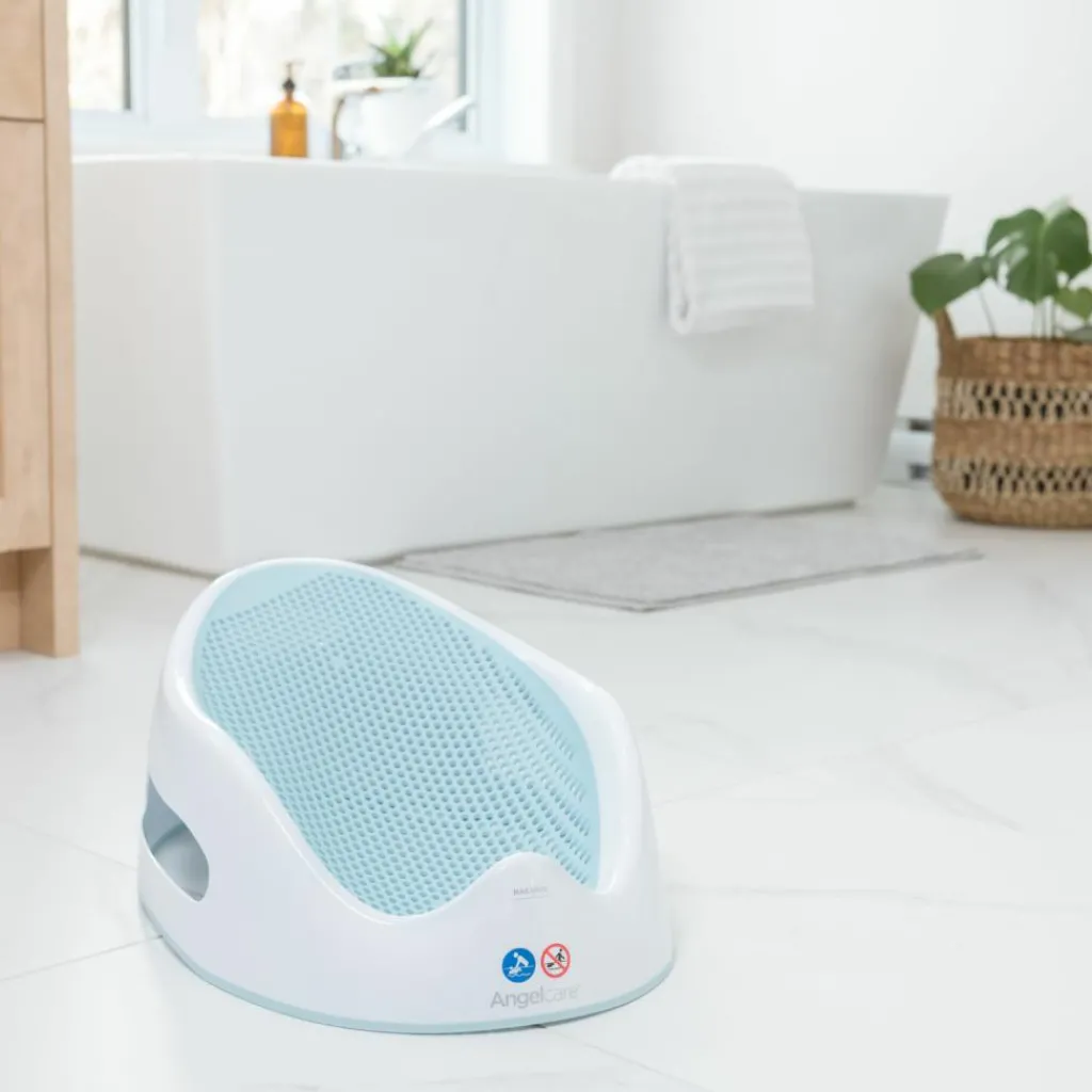 Offrez à bébé confort et sécurité dès ses premiers bains avec le transat de bain bleu clair Angelcare.