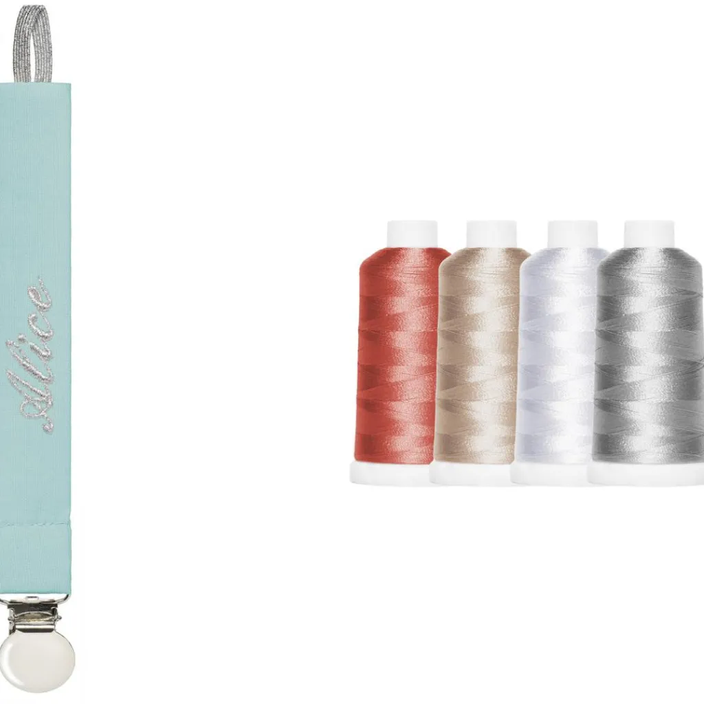 – La sucette s’accroche grâce au ruban de l’attache sucette.