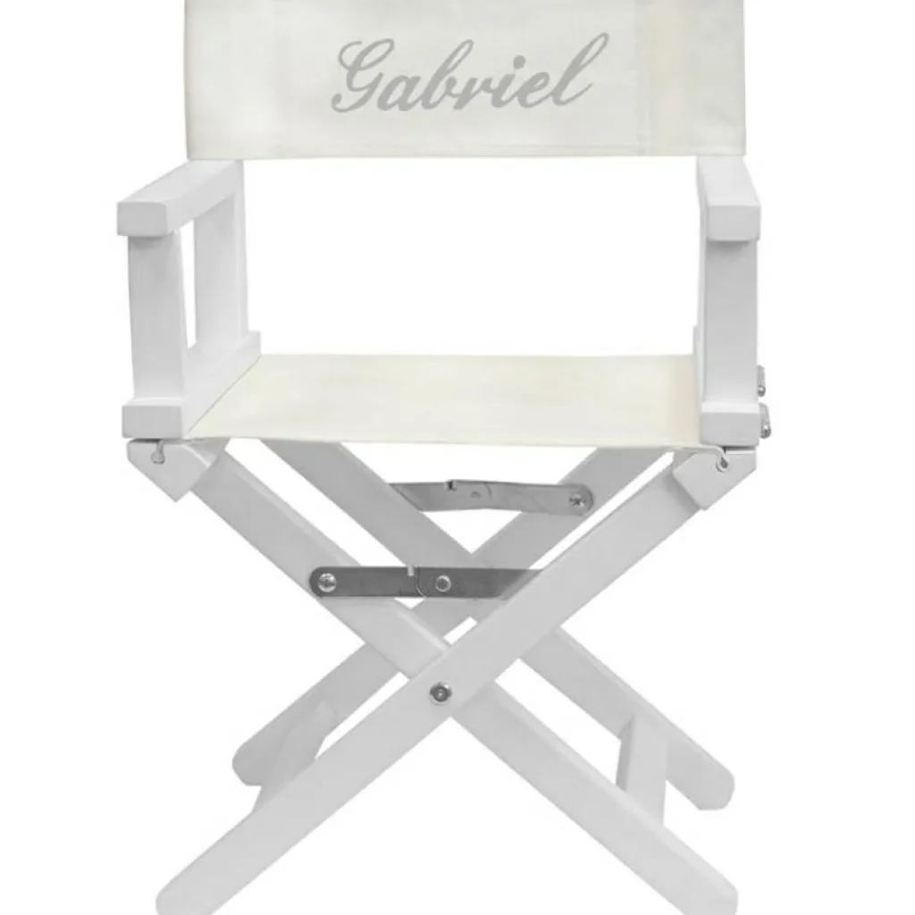 Le fauteuil metteur en scène gris pieds blancs de la marque ANVIE est un cadeau adorable et unique. L’enfant se sentira comme un grand dans ce joli fauteuil personnalisé spécialement pour lui.