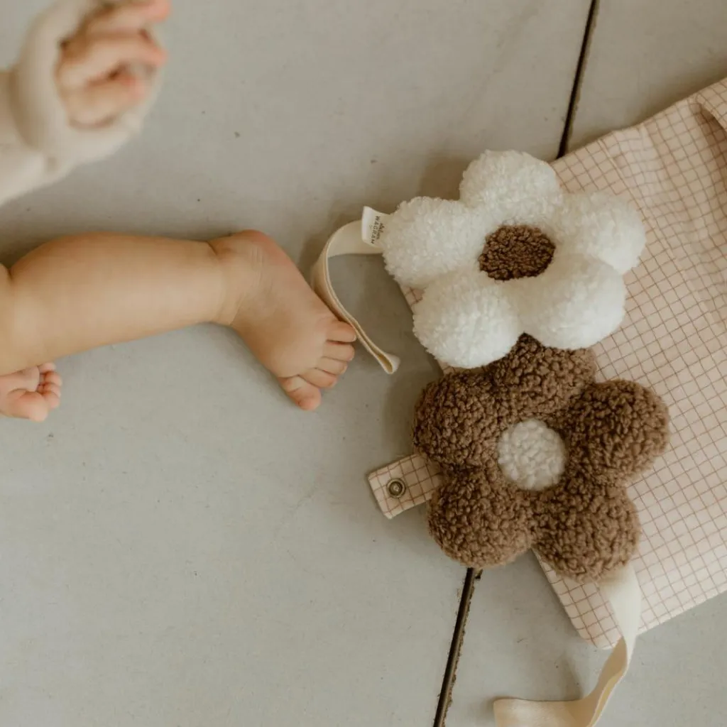 Ajoutez une touche de poésie au quotidien de bébé avec l’attache tétine Fleur moumoute d’Atelier Wagram.