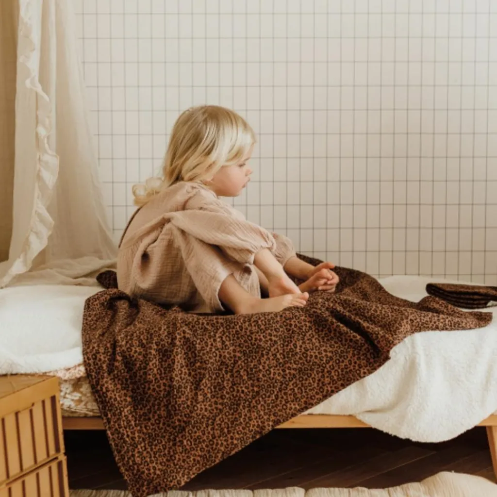 Un indispensable du quotidien : le Lange en gaze Léopard Atelier Wagram (105 x 105 cm), pratique, doux et stylé.