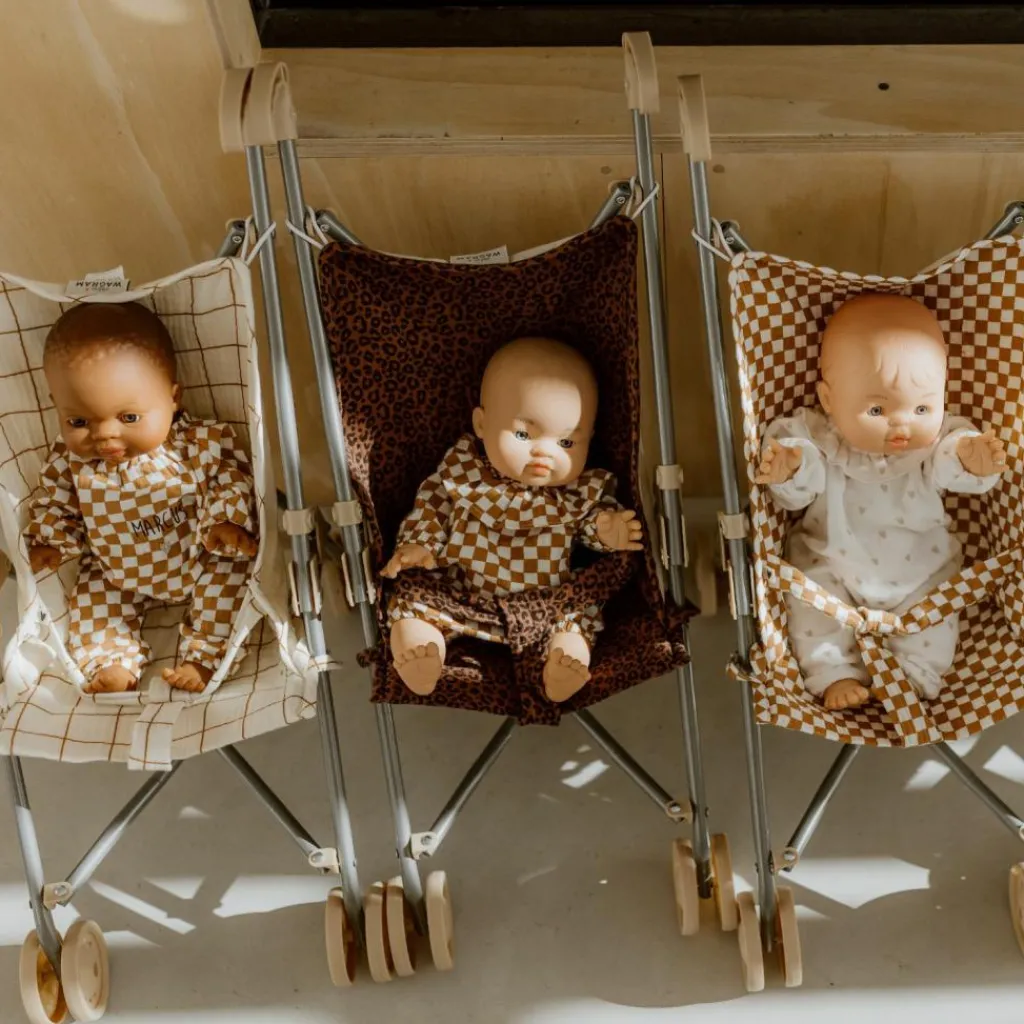 Faites briller les yeux de votre enfant avec la poussette pour poupée Gaze d’Atelier Wagram, un jouet doux et élégant à personnaliser pour des instants de jeu inoubliables !