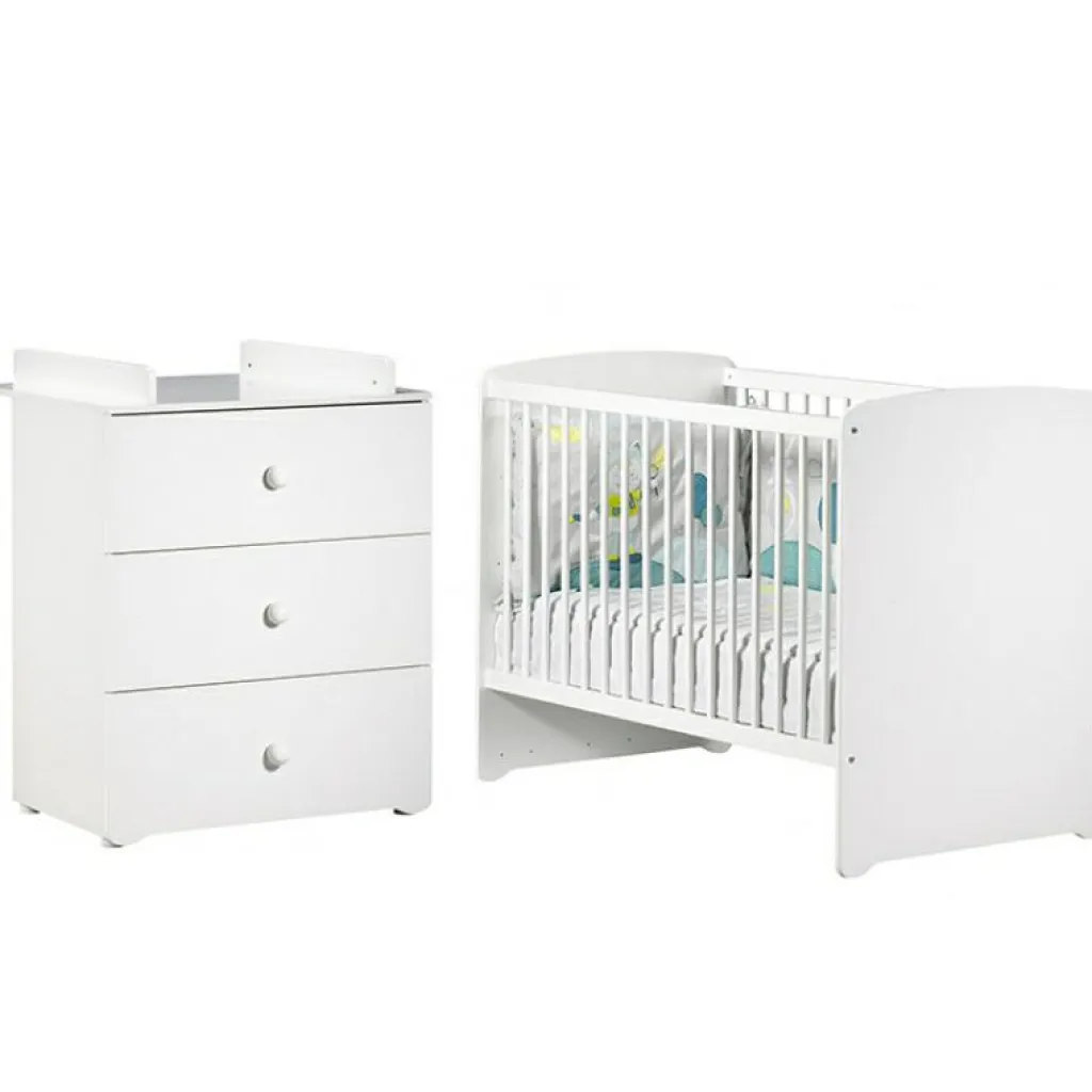 Ce pack duo New Basic de la marque Baby Price est composé d’un lit bébé et d’une commode à langer. Un ensemble aux lignes sobres et intemporelles qui conviendra parfaitement dans une chambre d’enfant.