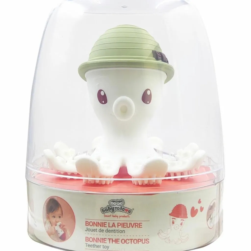 Cette jolie pieuvre 3D soulage bébé lors de ses poussées dentaires, avec ses 8 tentacules qui proposent une double texture, avec un côté « brosse » et un côté « picots ».