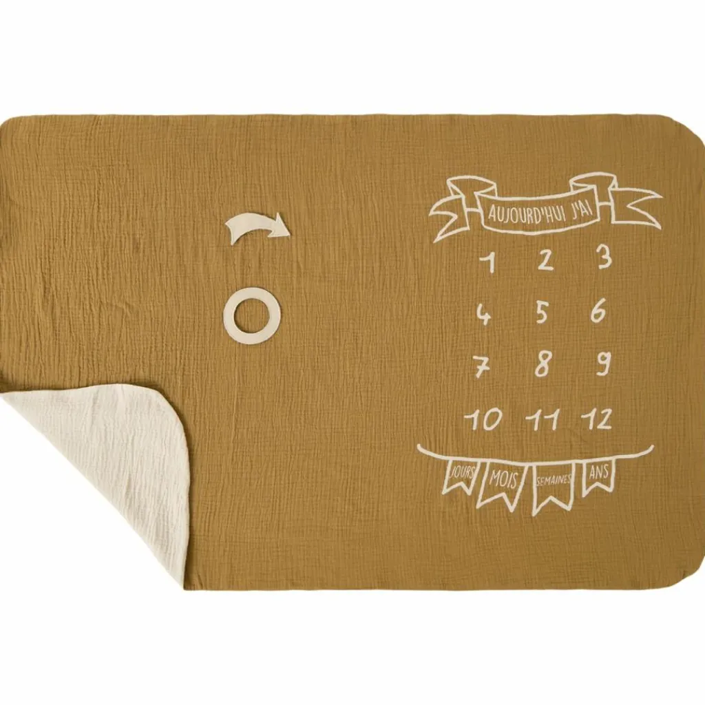 – Composée de deux couches de double gaze de coton, cette couverture magique offre deux utilisations : côté pile, c’est un joli plaid léger pour bébé, côté face, c’est un décor pour prendre bébé en photo à chaque étape de son développement.