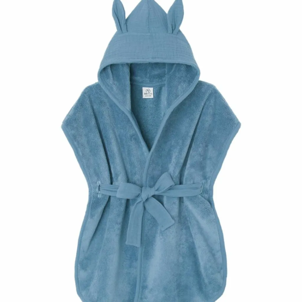 – Un adorable peignoir en éponge bambou avec capuche et ceinture en double gaze de coton ton sur ton.