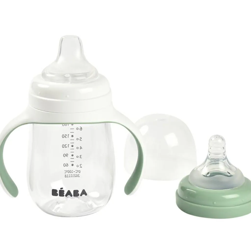 Matière : Corps : Tritan / Tétine biberon + embout : Silicone / Ensemble bague + capuchon : Polypropylène / Poignée : Polypropylène + TPE