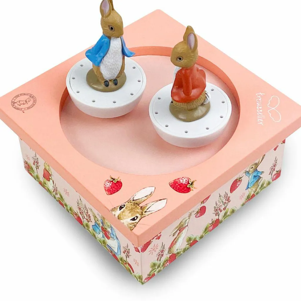 – Tourner la clé située sous la boîte puis poser les figurines pour les faire danser.