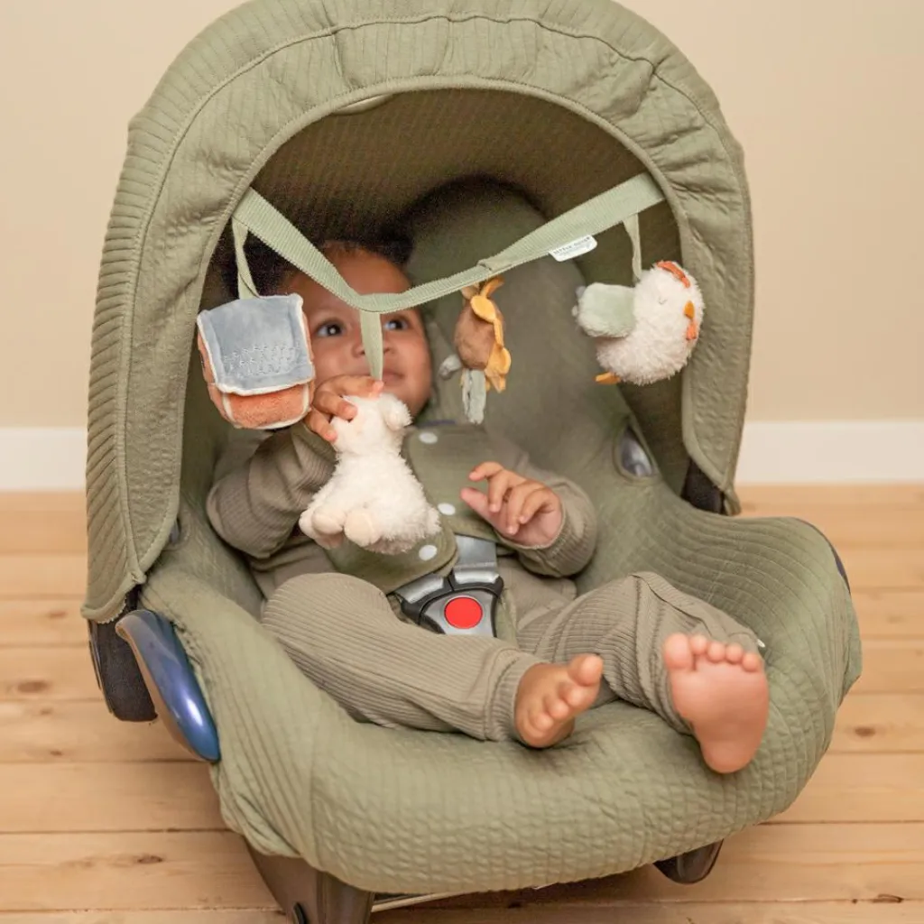 – Ce jouet de siège auto Little Dutch avec des amis de la ferme est facile à fixer à un siège auto ou une poussette.