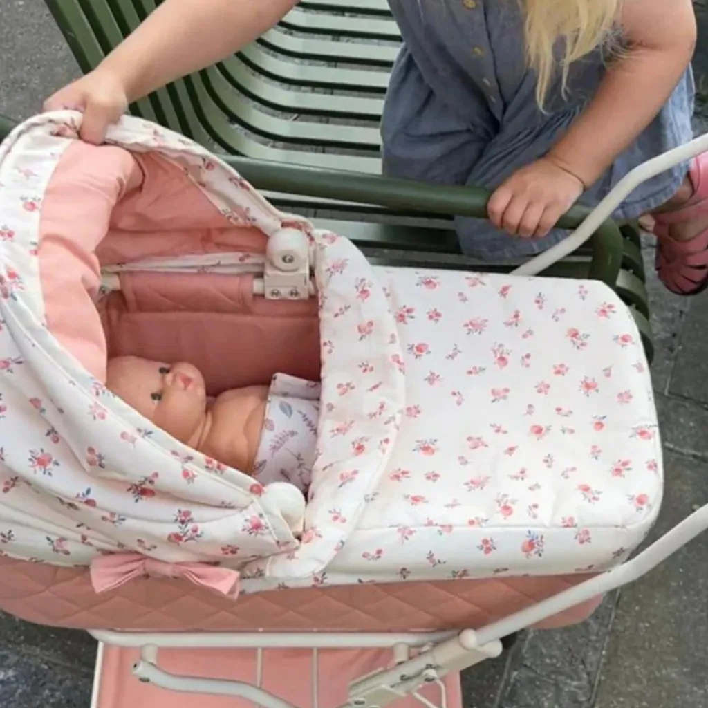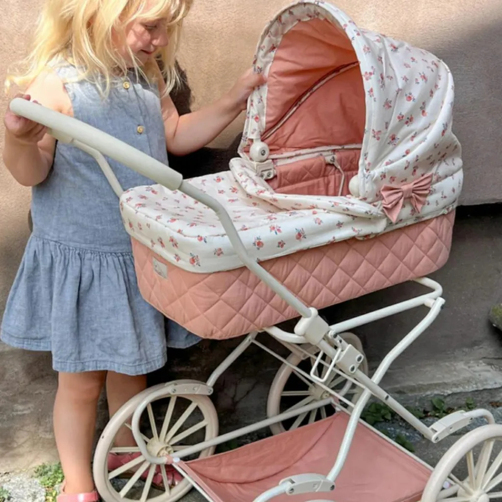 – Landau de poupée avec un motif fleuri.