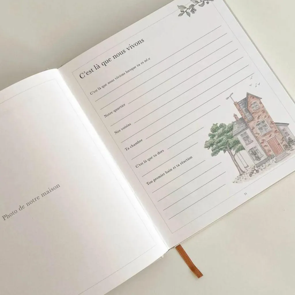 – Une page est consacrée à chaque étape de la première année de votre enfant, de la grossesse aux impressions des parents, en passant par la naissance, le nom, l’arbre généalogique, le premier sourire, la première dent, les premiers pas et bien plus encore.