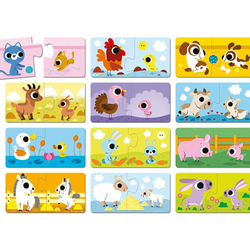 – En carton sur le thème des parents et bébés animaux de la ferme.