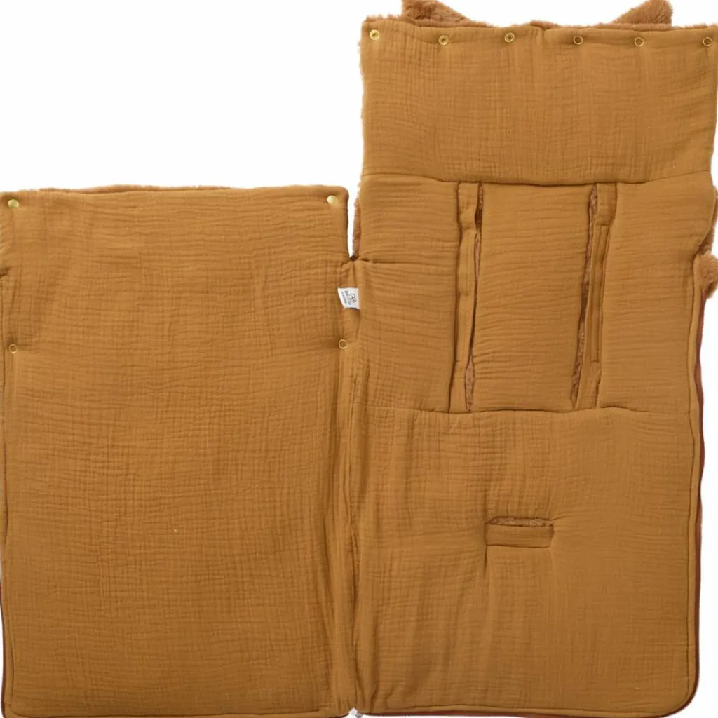 – Entièrement ouatiné et doublé de gaze de coton, cet adorable nid d’ange est entièrement zippé et comporte des fentes universelles à scratch pour le passage des sangles (siège auto ou poussette).