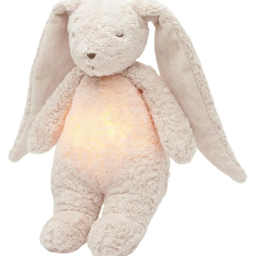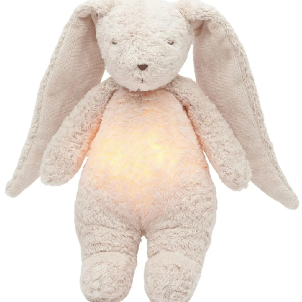 Un compagnon idéal pour le coucher : Adoptez la peluche veilleuse lapin nature bio de Moonie pour des nuits pleines de douceur !
