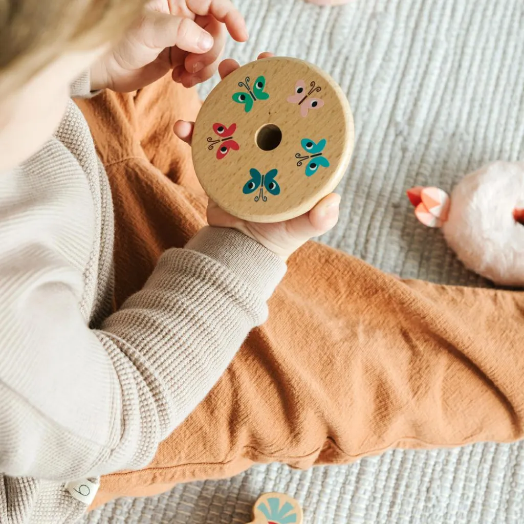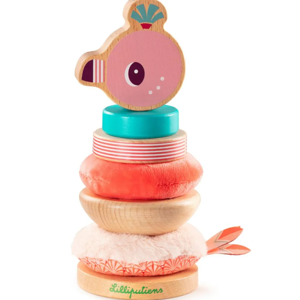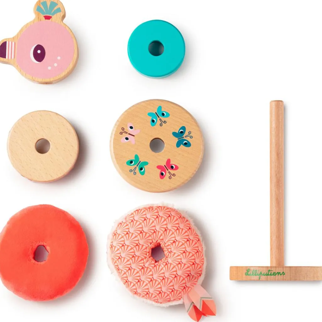 La pyramide à empiler Anaïs le flamant rose de la marque Lilliputiensstimule la logique et la préhension fine des tout-petits grâce à ses six éléments à empiler.