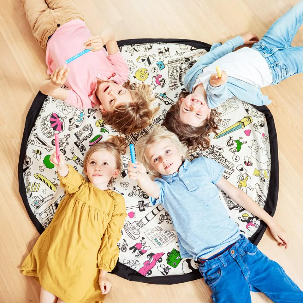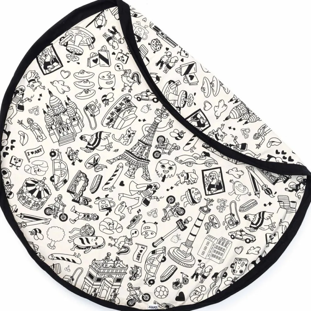 Le sac à jouets 2 en 1 réversible Color your bag Parisde la marque Play&Go permet de transporter facilement les jouets d’une pièce à l’autre ou même hors de la maison. Confectionné en tissu résistant, il devient un tapis de jeu lorsqu’on desserre les liens. Dès que l’enfant a fini de jouer, il suffit de serrer à nouveau les liens et tout est déjà rangé !