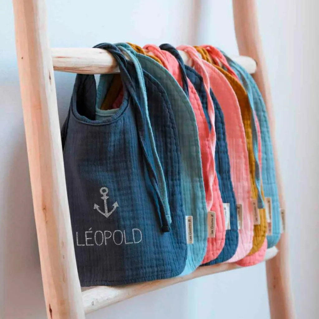 Le set de naissance Bavoir et anneau de dentition Bleu pétrole de la marque Les Griottes est une formidable idée de cadeau de naissance qui accompagnera bébé au quotidien durant les premiers mois de sa vie. Composé d’un anneau de dentition et d’un bavoir à nouer personnalisable, ce coffret plaira à coup sûr.