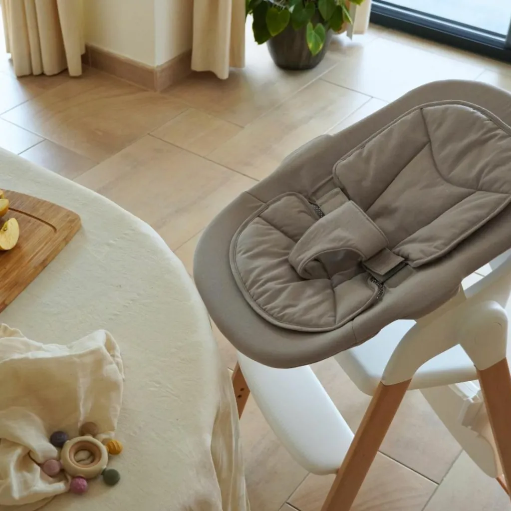 Il est parfaitement compatible avec la chaise haute Grow With Me, vous permettant de passer facilement de la chaise au sol grâce au système de clic pratique.