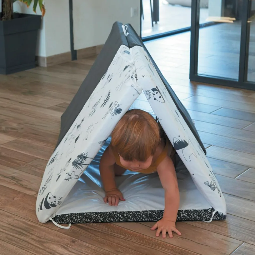 Le tapis de jeu pliable XL multifonctions Black & white experience de la marque Candide est un accessoire multifonctions très pratique. Il peut être utilisé comme tapis de jeu, mais également comme matelas d’appoint, pouf ou encore cabane !