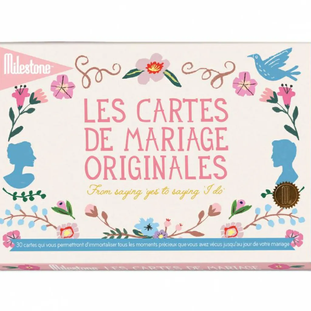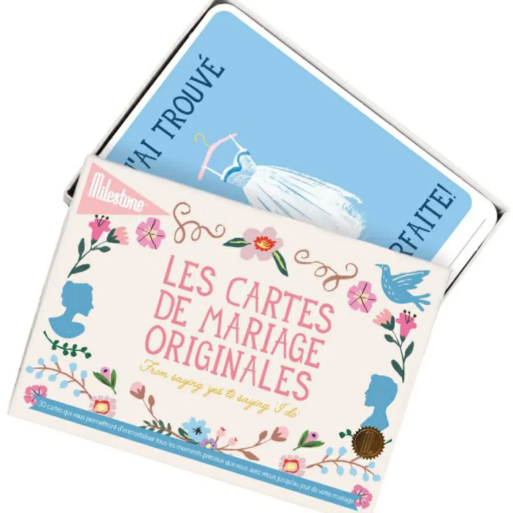Le pack de cartes photos souvenirs de mariage préimprimées par Milestone permet d’immortaliser toutes les étapes de la préparation de votre mariage jusqu’au jour J : envoyer les invitations, choisir la robe, les fleurs, etc.