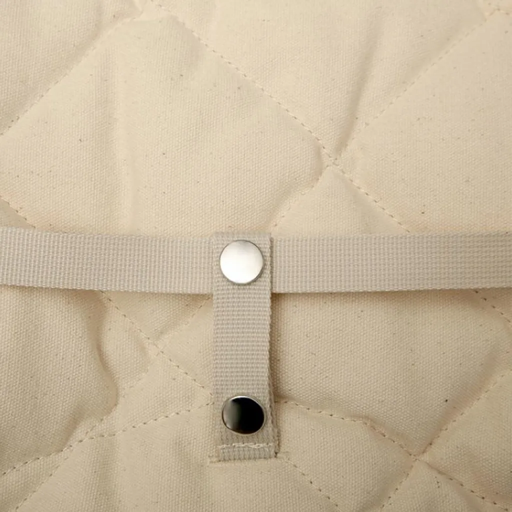 – Tissu : 100% coton bio, garnissage 100% polyester.