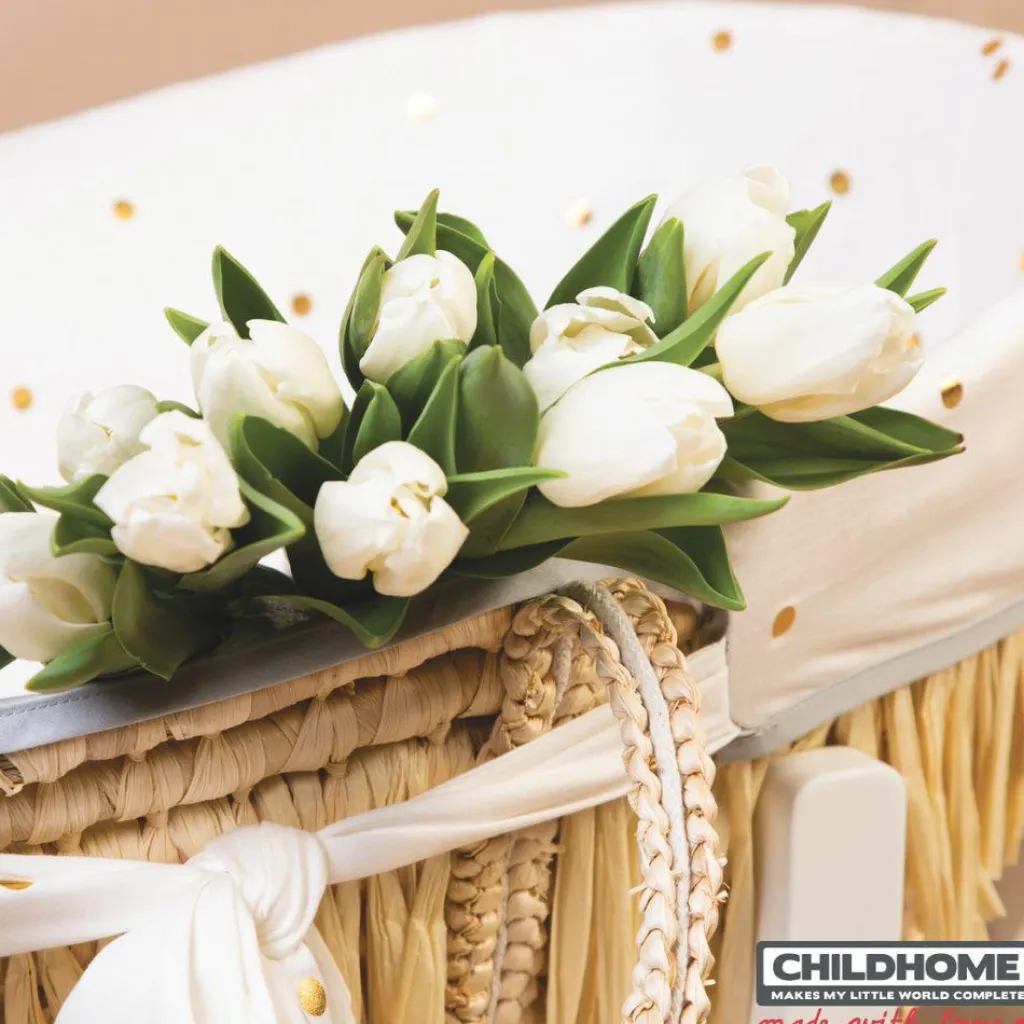 L’ habillage pour couffin pois doré de la marque Childhome habillera le couffin en osier naturel de la marque. Ainsi, votre bébé peut se coucher confortablement et dormir confortablement.