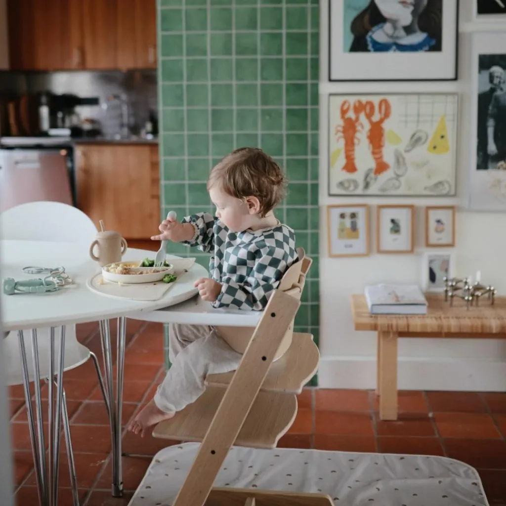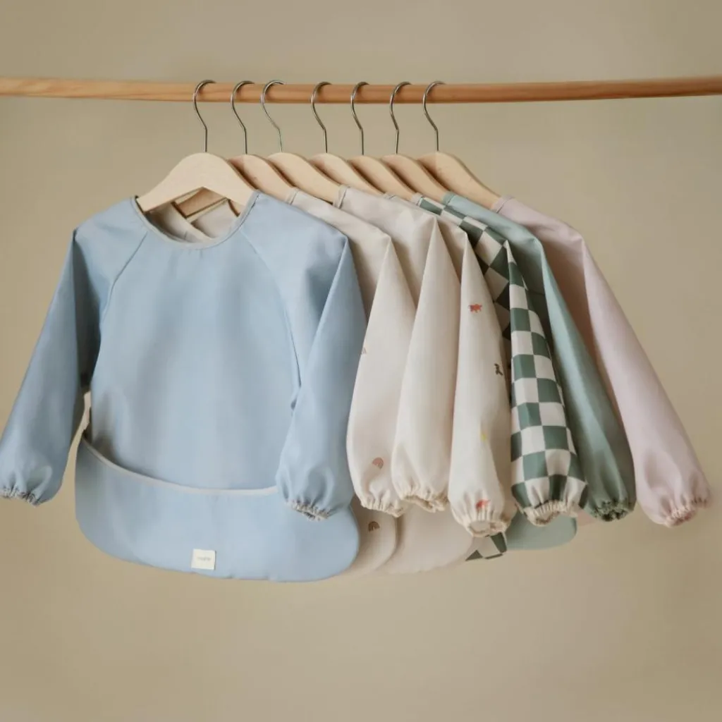 Protégez les vêtements de votre bébé avec style grâce au Bavoir à manches longues Mushie, pensé pour les petites aventures du quotidien !