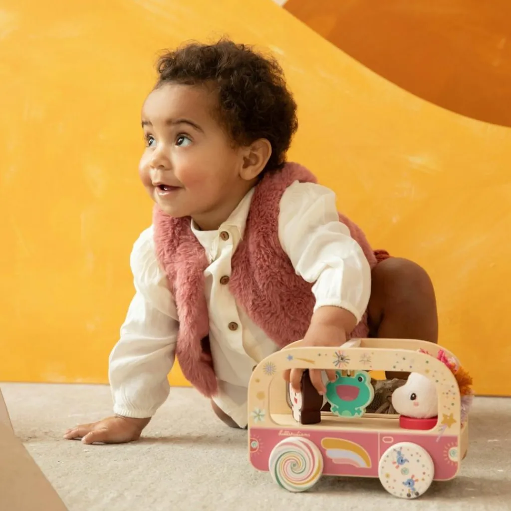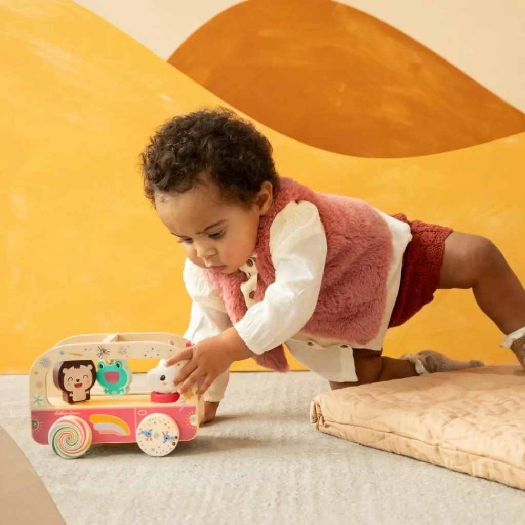 Embarquez pour l’aventure avec le Bus magique en bois Léna de Lilliputiens, un jouet d’éveil plein de surprises !