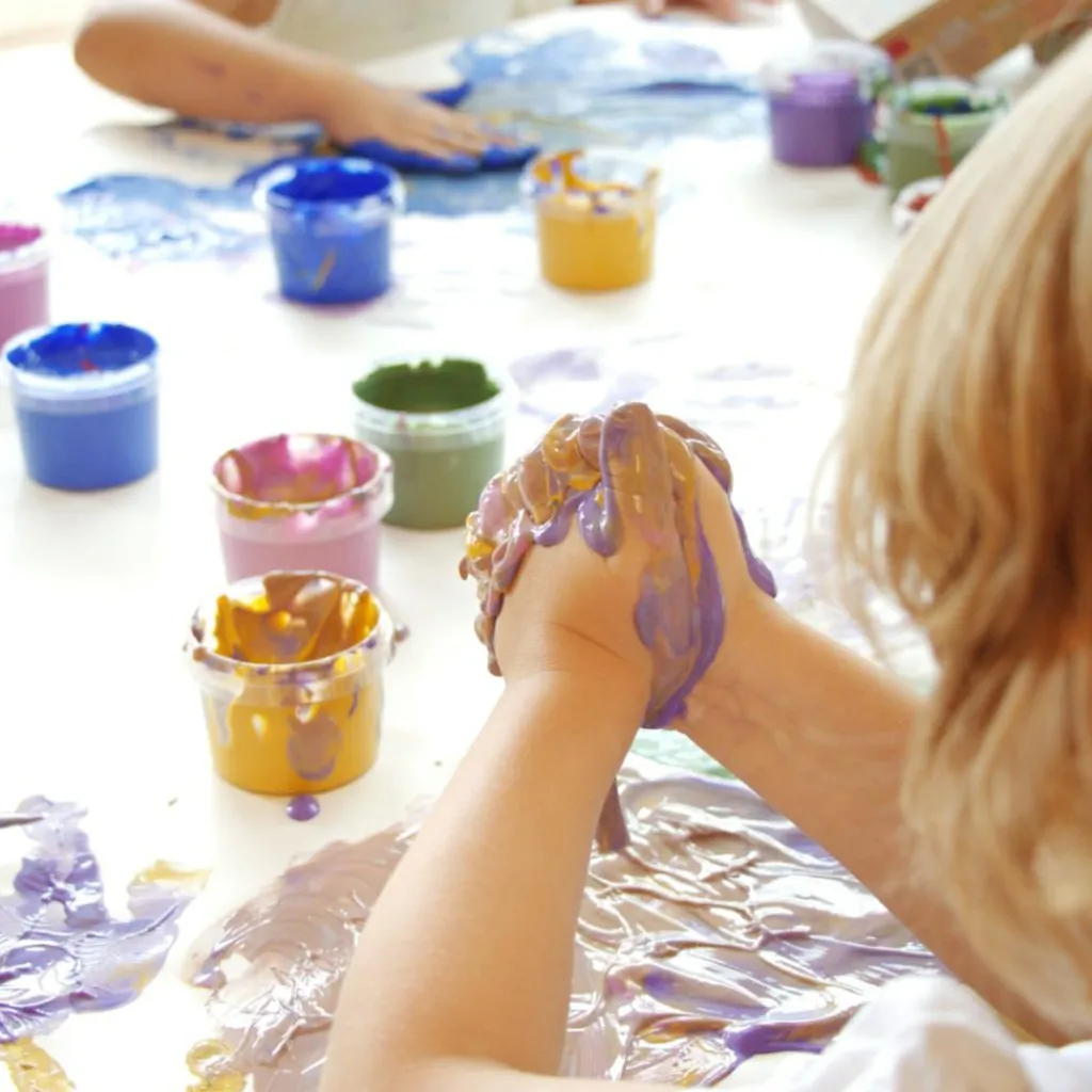 – Peintures pour doigts faciles à étaler, solubles dans l’eau, diluables et miscibles entre elles.