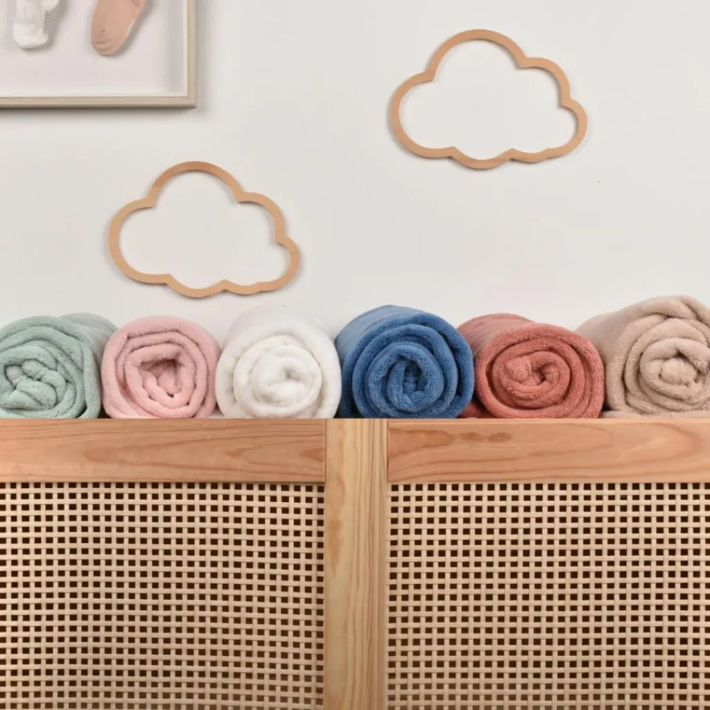 Disponible en plusieurs teintes douces et élégantes — blanc pur, beige naturel, rose tendre, vert amande ou terracotta chaleureux — le Plaid Douceur s’adapte à tous les univers de bébé. Avec sa taille pratique de 70 x 100 cm, il se glisse facilement dans un sac à langer ou une poussette pour accompagner bébé partout.