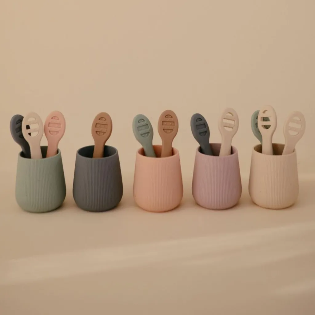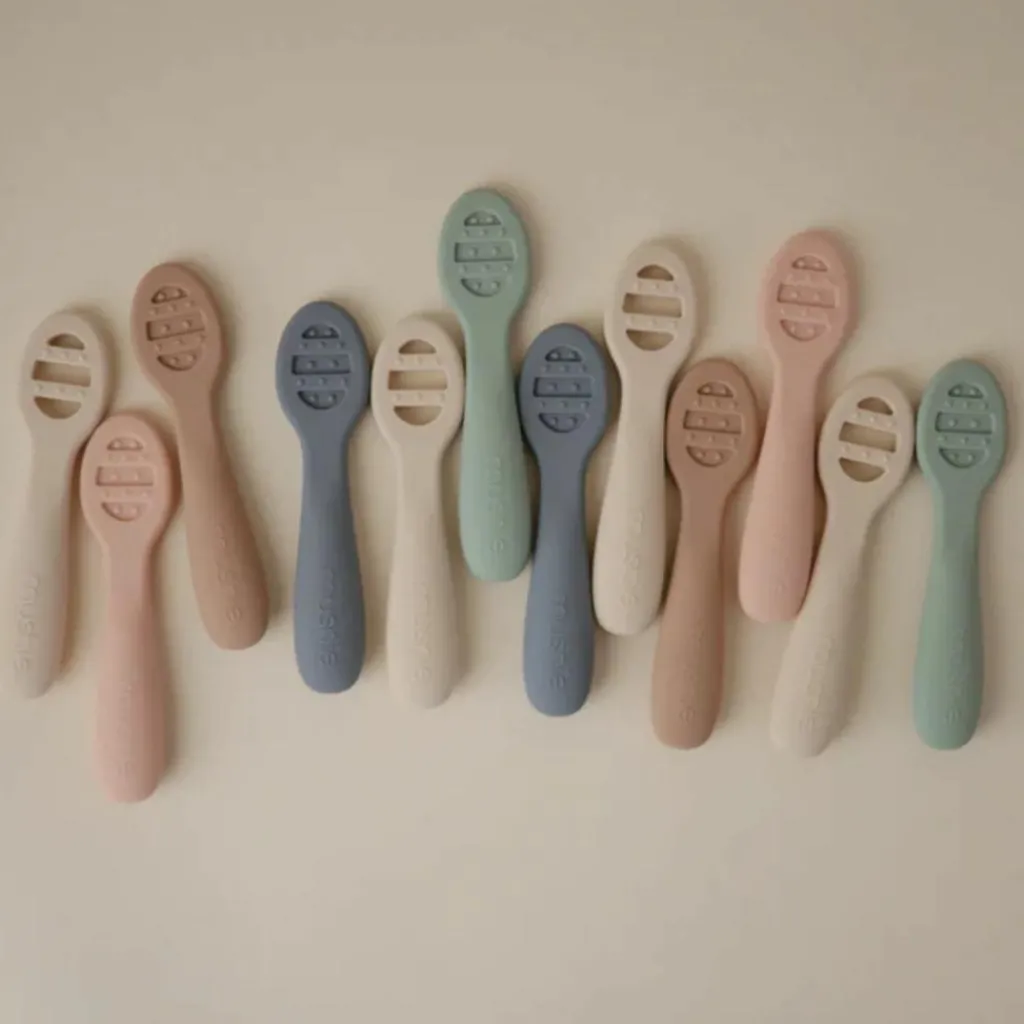 Un essentiel pour les repas en autonomie : Jolies, sûres et pratiques, ces cuillères Mushie rendent chaque repas plus simple et plus agréable pour bébé.