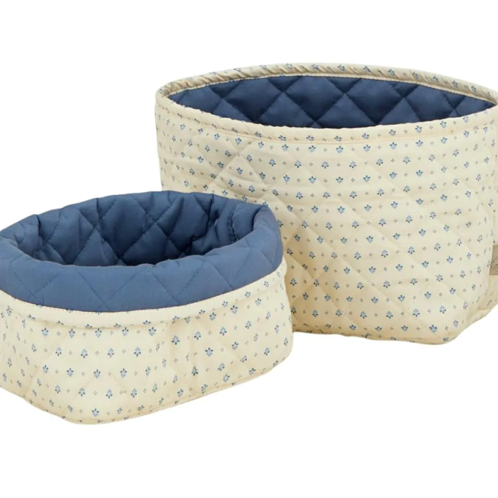 – Paniers de rangement matelassés – Set de deux dans les tons blancs et bleu.