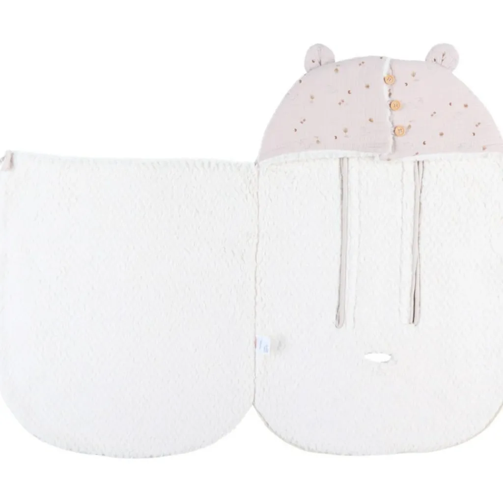 – Polyvalence d’utilisation : Grâce auxdeuxgrandes fermetures auto-agrippantes au dos, ce nid d’ange s’adapte auxnacelles, sièges-auto et poussettes avec système de fixation de ceintures 3 ou 5 points.