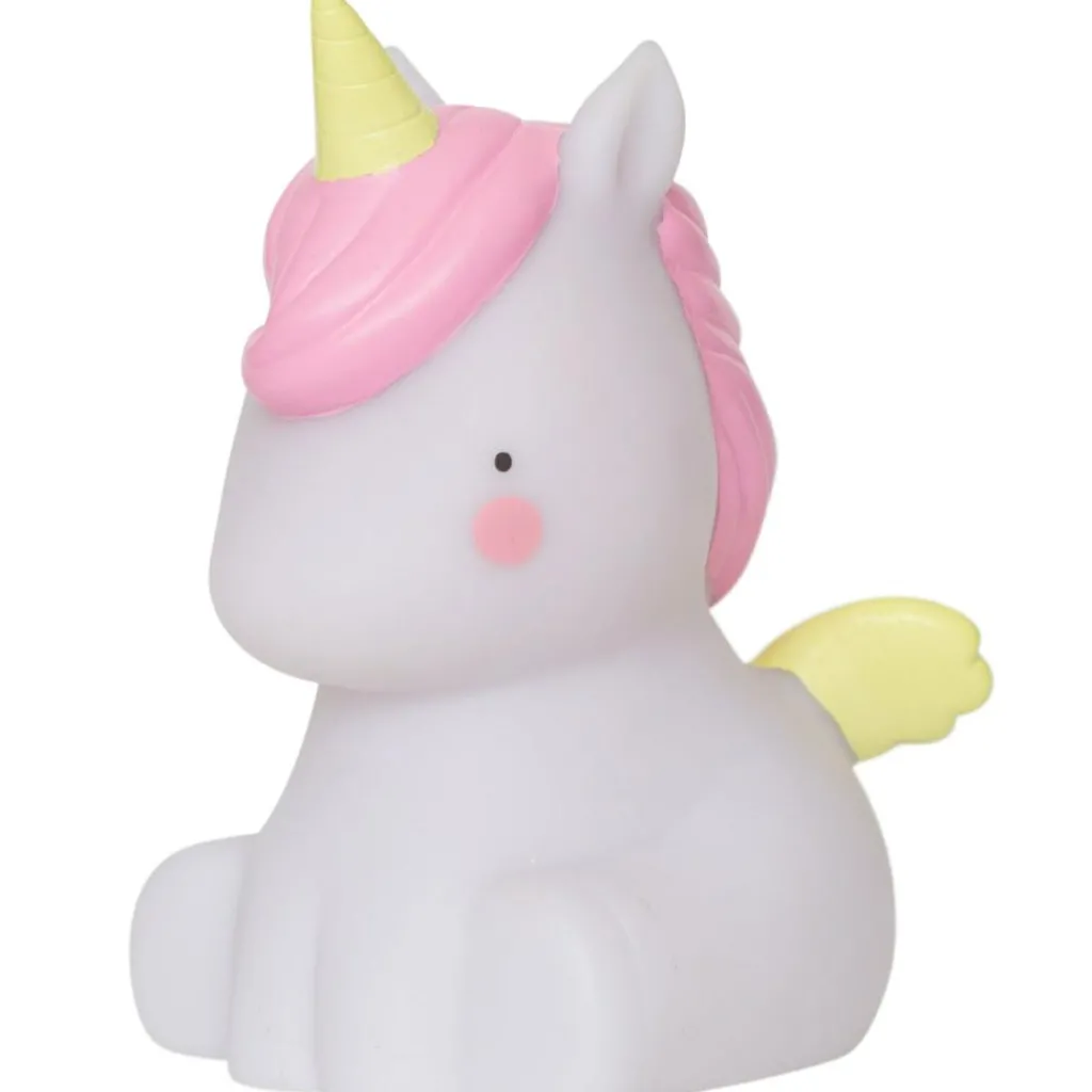 La petite veilleuse licorne de la marque A Little Lovely Company apporte une touche poétique à la décoration d’une chambre d’enfant. Une lampe aux couleurs pastels très déco de jour qui devient une veilleuse la nuit.