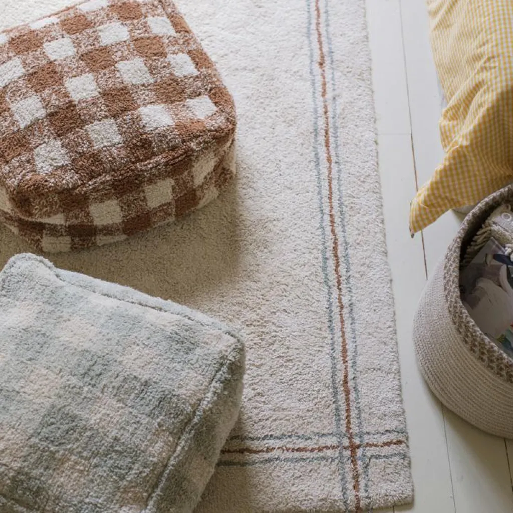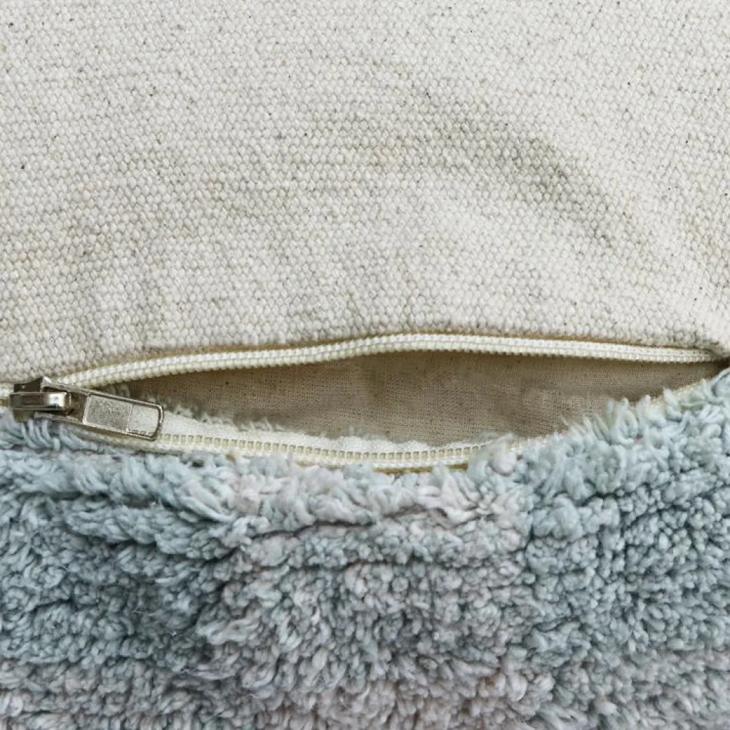 – Housse zippée amovible en toile de coton recyclée avec fils en coton.