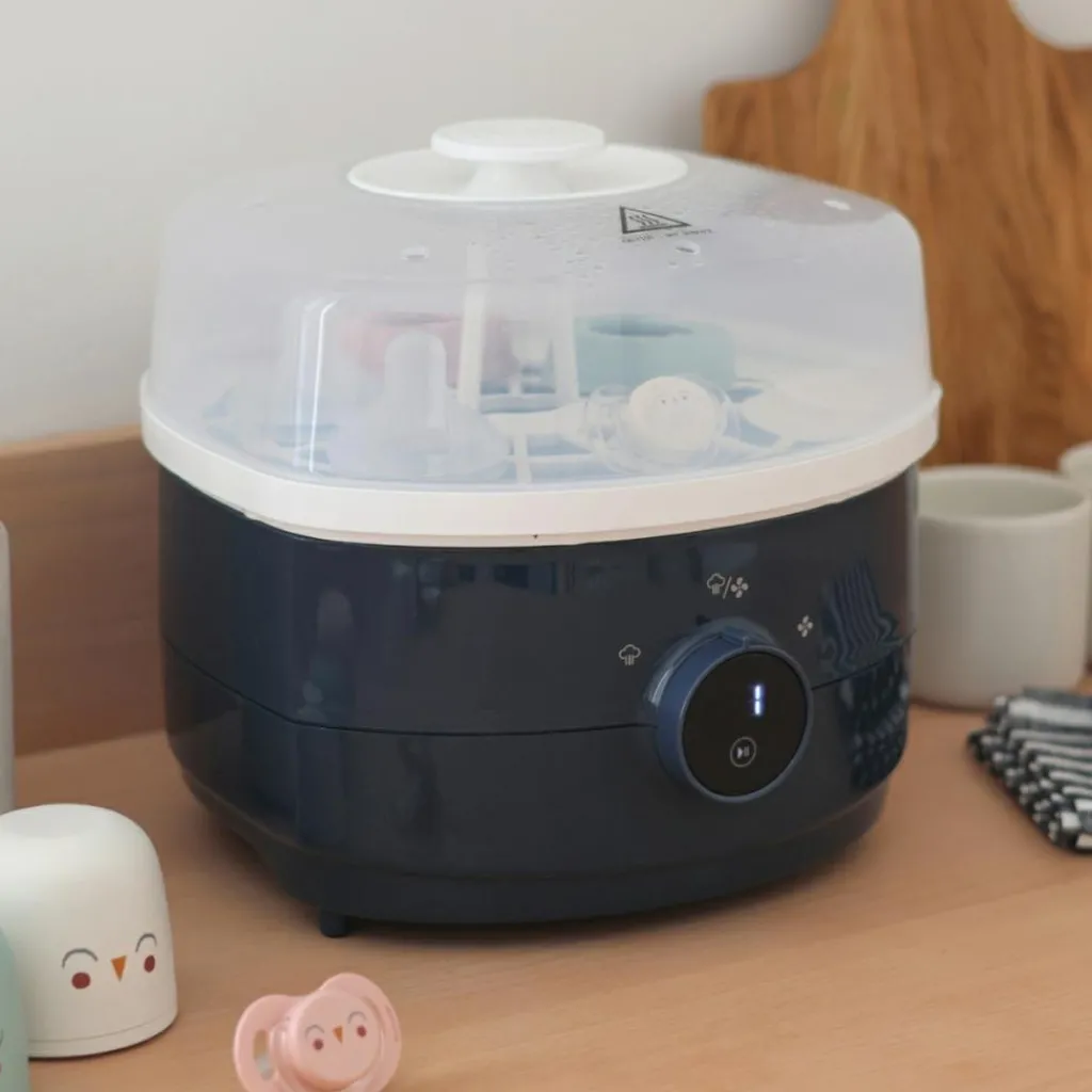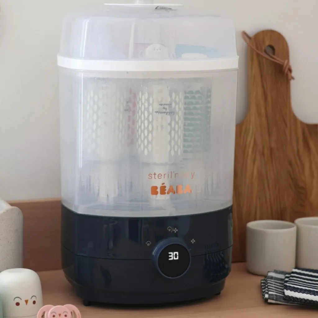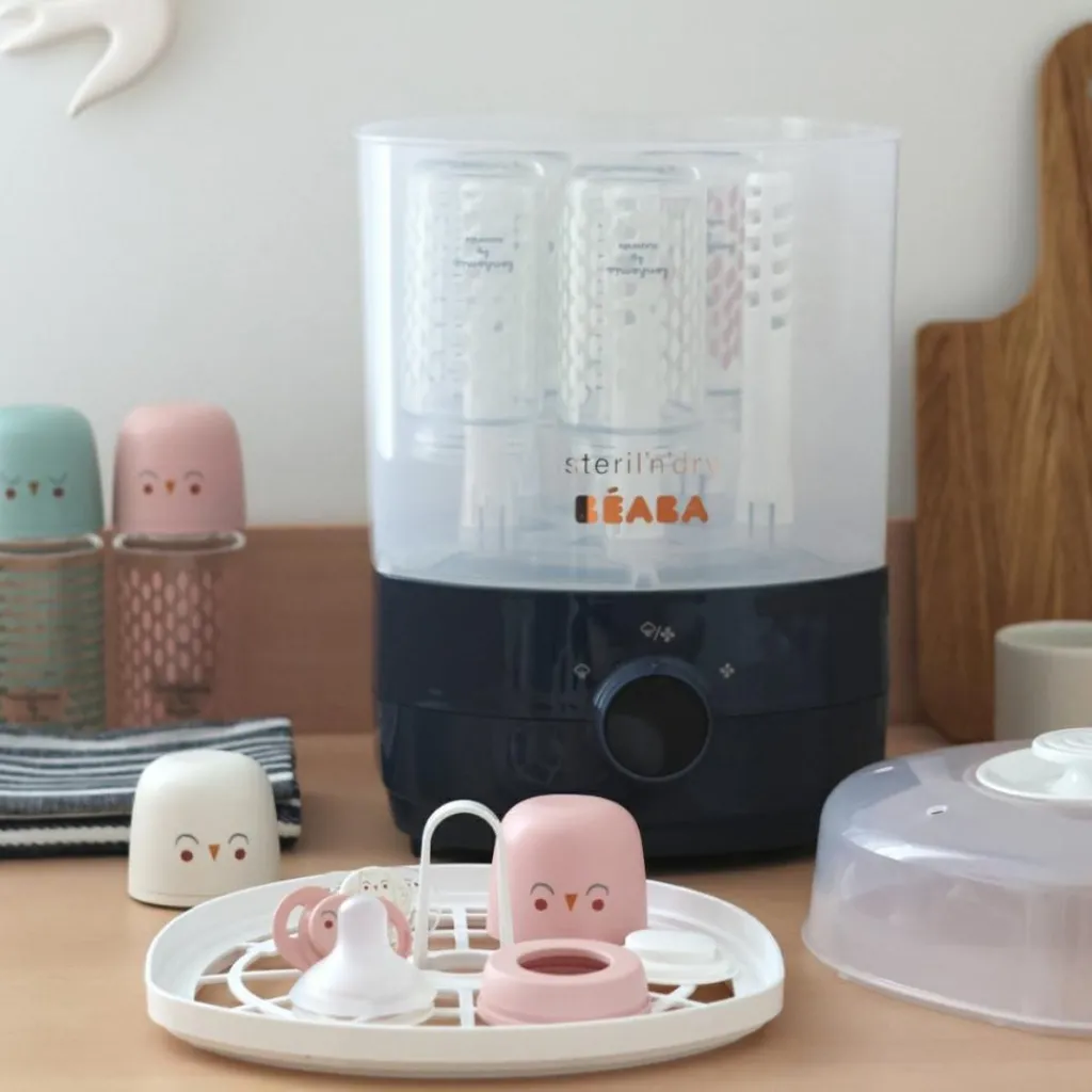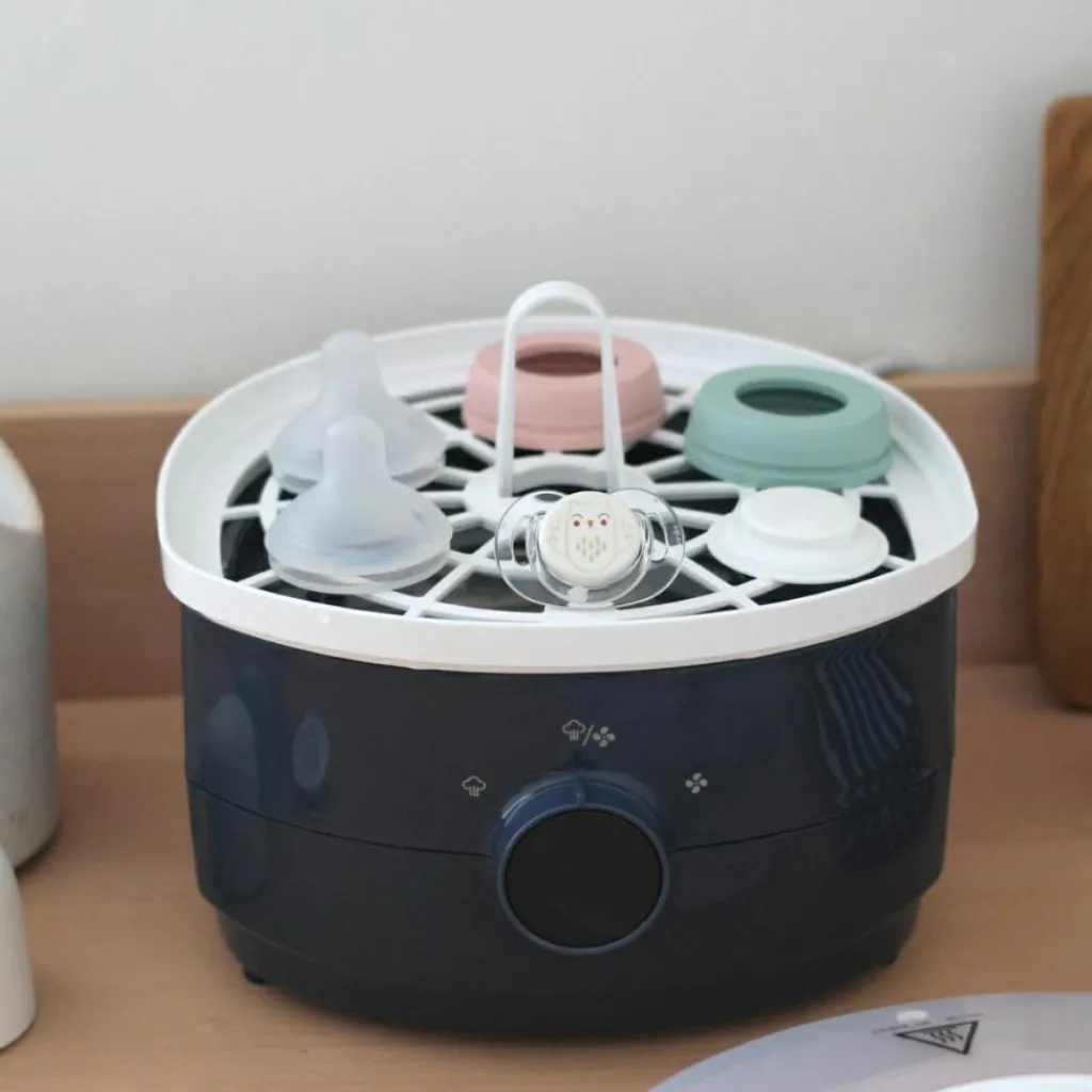 Le stérilisateur séchant 2 en 1 pour éliminer rapidement et efficacement les principales bactéries des biberons et accessoires, en les laissant secs et prêts à l’emploi.