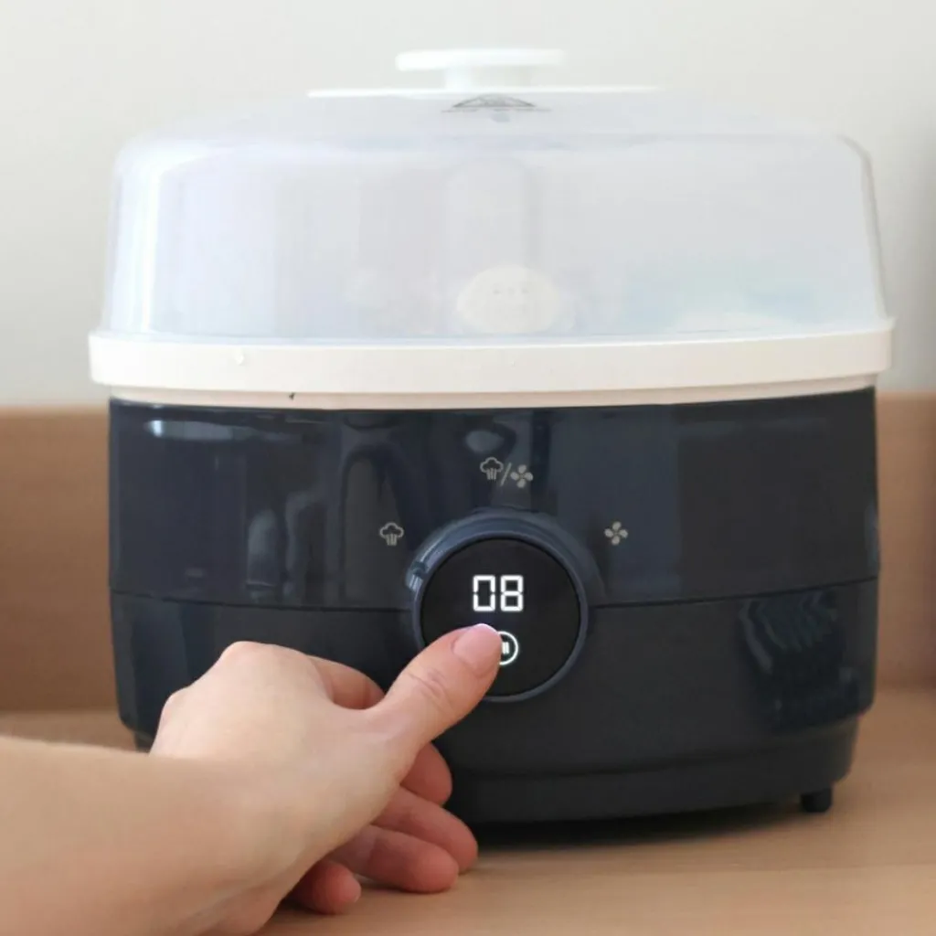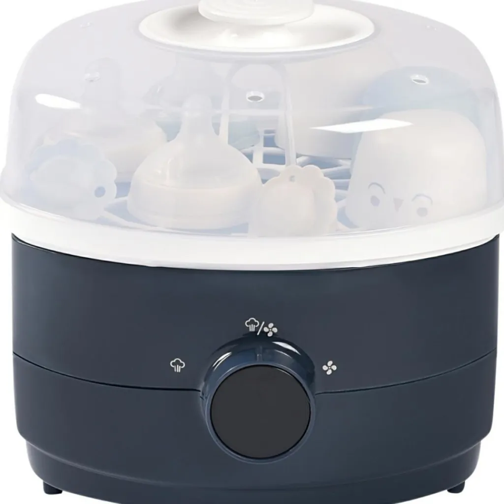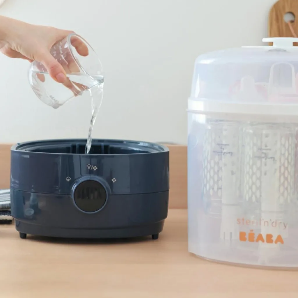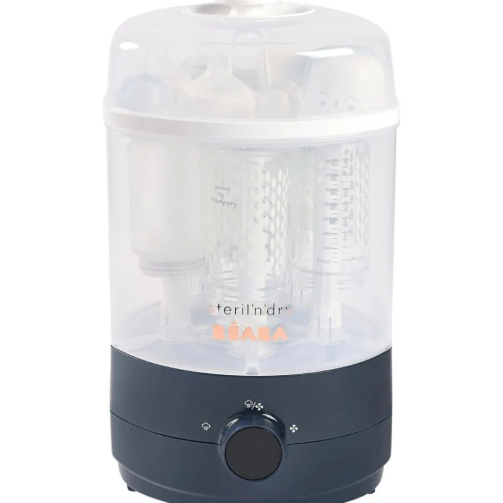 Le stérilisateur séchant 2 en 1 pour éliminer rapidement et efficacement les principales bactéries des biberons et accessoires, en les laissant secs et prêts à l’emploi.