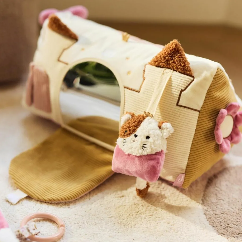 Le format triangle est parfait pour une installation dans le parc ou sur un tapis de jeu. Votre enfant pourra manipuler les formes, explorer les textures variées et éveiller sa curiosité en toute sécurité. Ce jouet d’éveil aux tons doux et poétiques s’intègre facilement dans toutes les décorations de chambre.
