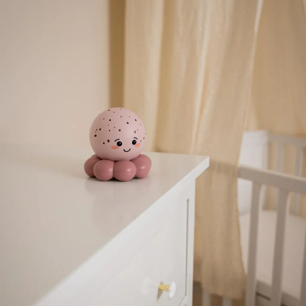 La veilleuse Twinkles To Go Octo rose pastel est le compagnon idéal en voyage pour accompagner bébé vers un sommeil paisible. Cette petite veilleuse pieuvre projette des motifs amusants d’étoiles, de poissons et de bulles en 3 couleurs.