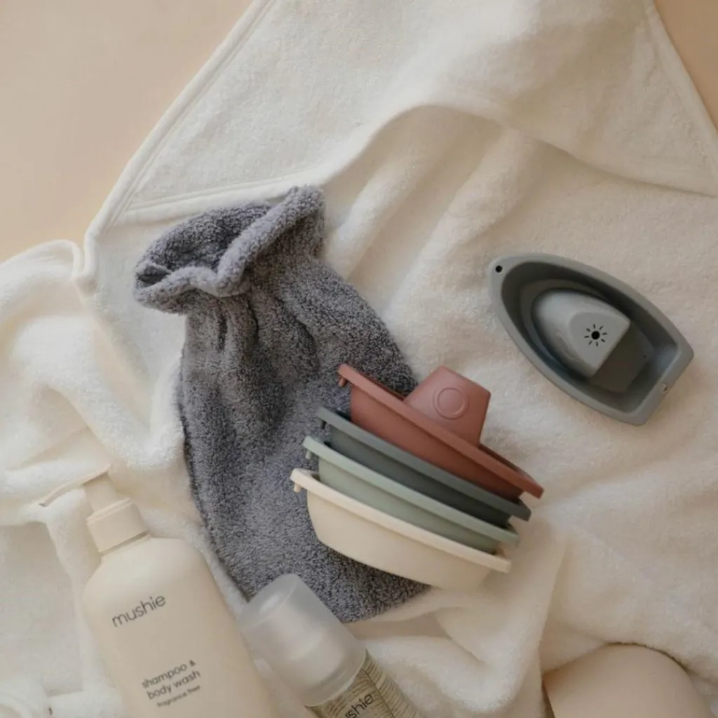 – Bateaux de bain Mushie : Pour transformer l’heure du bain en aventure joyeuse et sensorielle.