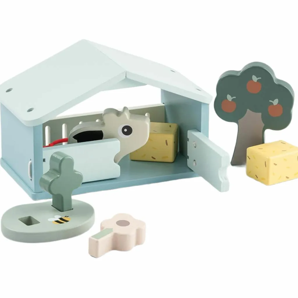 Avec ce coffret de jeu Tiny Farm Dotti’, votre enfant découvre le plaisir de s’inventer mille histoires à la ferme. Dotti la vache l’attend dans sa petite étable pastel, entourée d’un pommier, d’une fleur, d’un trèfle et de deux bottes de foin. Chaque élément en bois est pensé pour stimuler la motricité fine et encourager le langage à travers le jeu libre.
