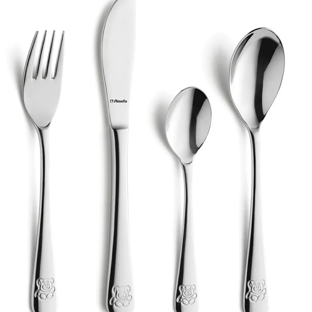 Le set de 4 couverts Ourson de la marque Daniel Crégut est un superbe cadeau pour une naissance ou un baptême.