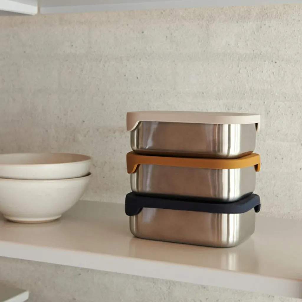 – Boîte en acier inoxydable avec couvercle en silicone souple.