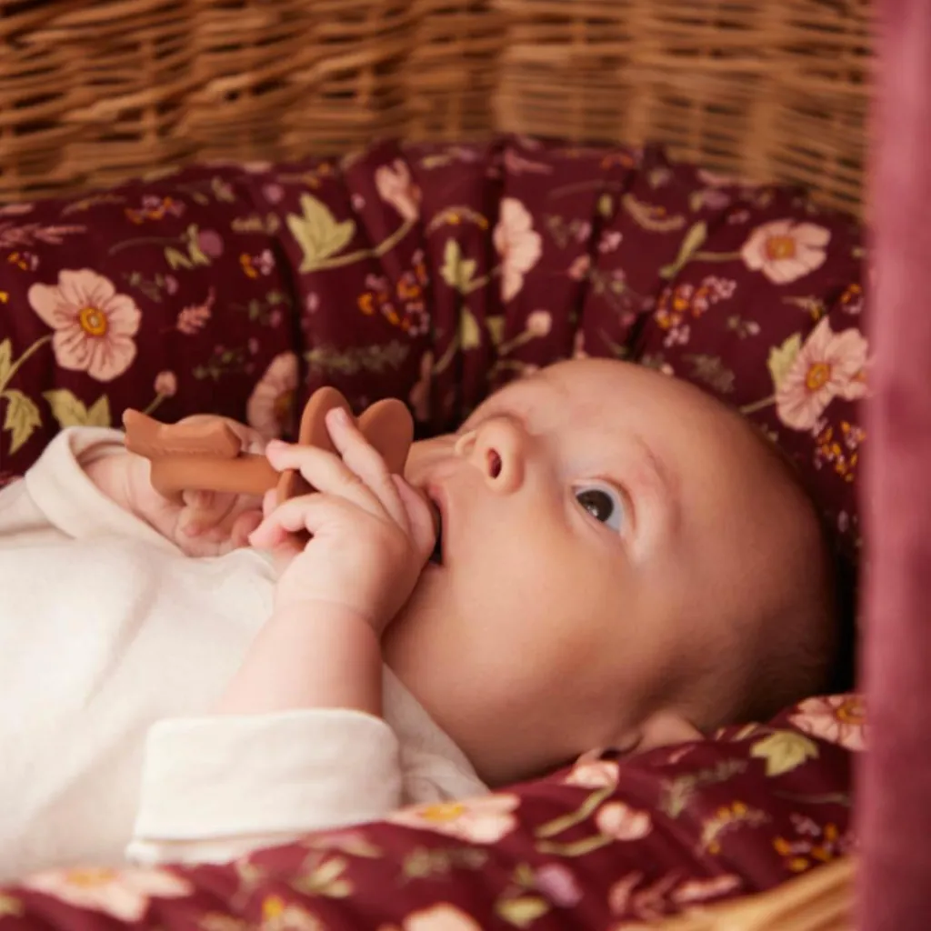 Un soulagement tout en douceur avec le jouet de dentition bracelet Fleur de Filibabba, l’allié des premières poussées dentaires !