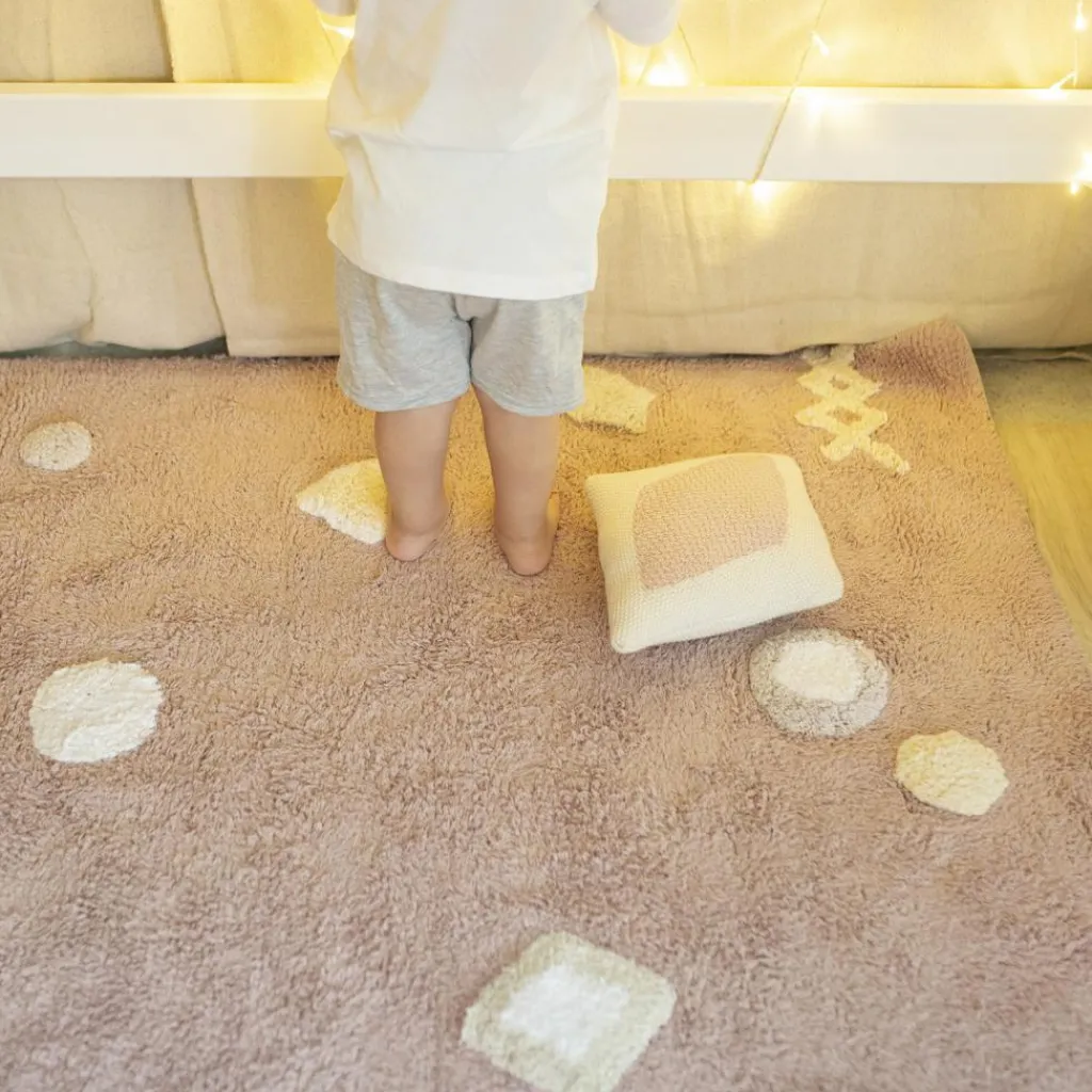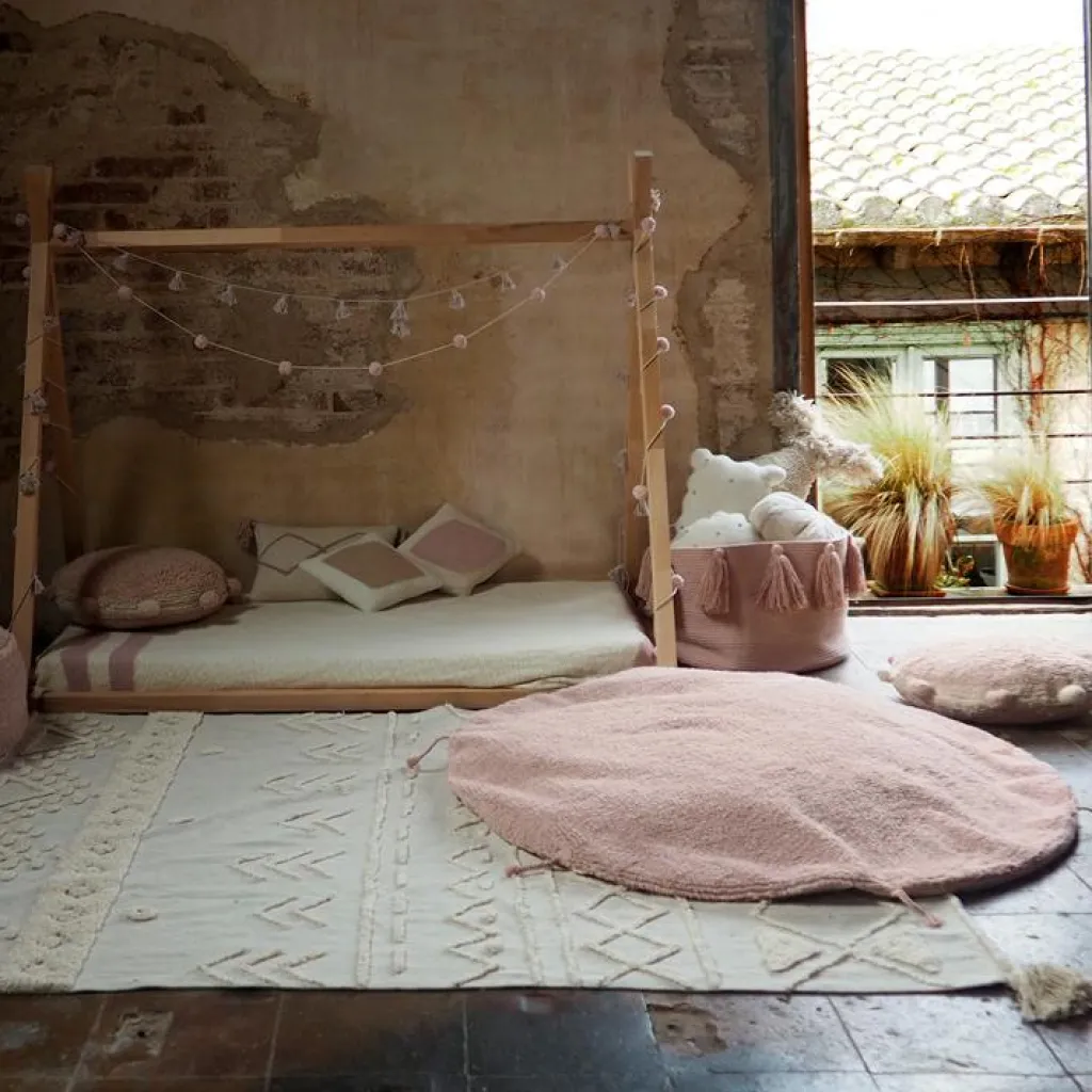 Le coussin losange Candy Vanilla rose de la marque Lorena Canals apportera une touche de décoration chaleureuse et sucrée à la chambre de votre enfant.