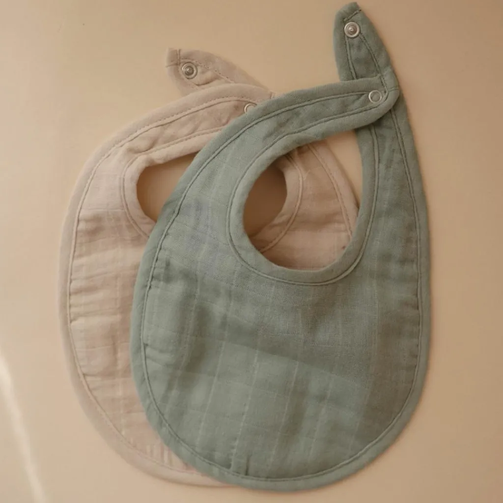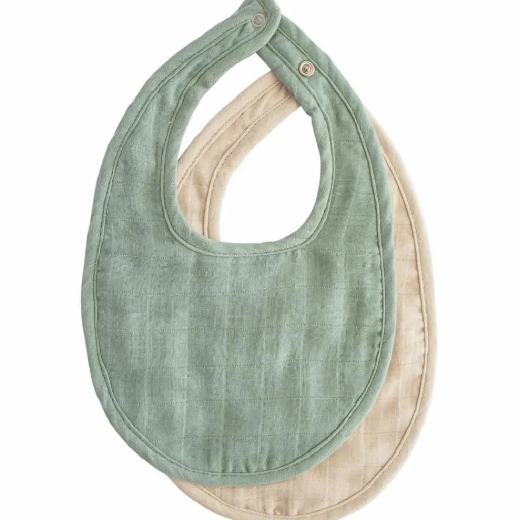 Indispensable pour les premiers mois de bébé, le lot de 2 bavoirs en mousseline de Mushie allie douceur, praticité et style naturel !