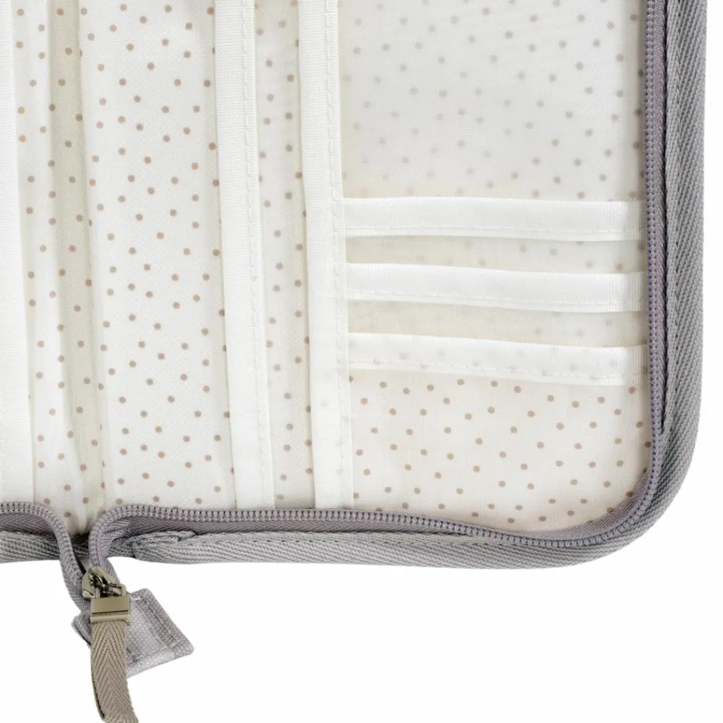 – Il est également doté d’une fermeture éclair pratique pour garder en sécurité le protège carnet de santé et tous les documents de votre bébé.